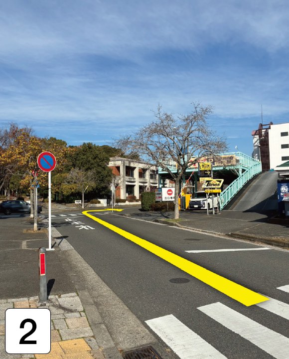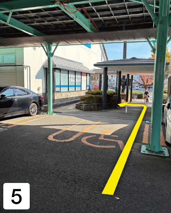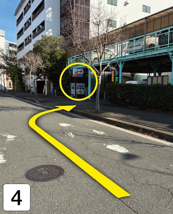 裏側へ回り込むと提携駐車場の入り口が見えてきます